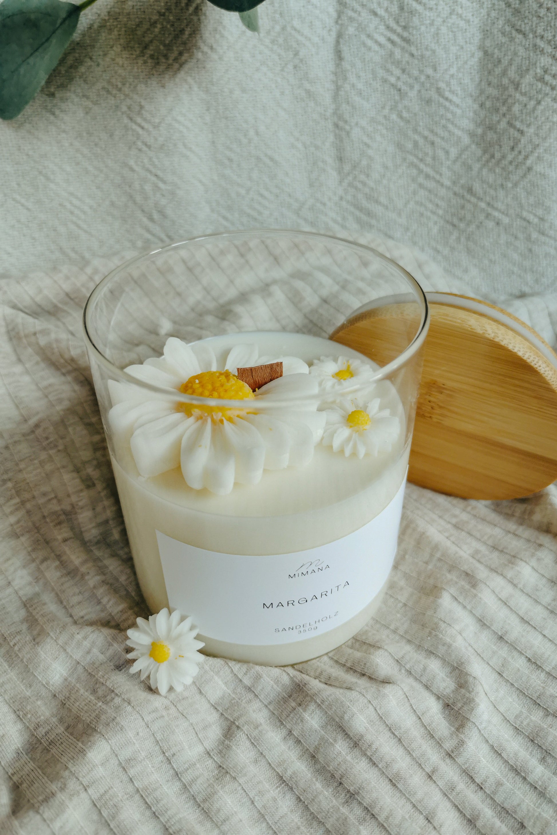 Mimana Kerzen werden mit einem sauber brennenden Sojawachs und Duftöl Mischungen hergestellt. Sie enthalten kein Paraffin, Petroleumprodukte oder tierischen Wachsgehalt.